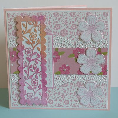 The card blank is 6 and 1/4 inces square and made from some really old pearlescent pink card which came from Craftwork Cards.